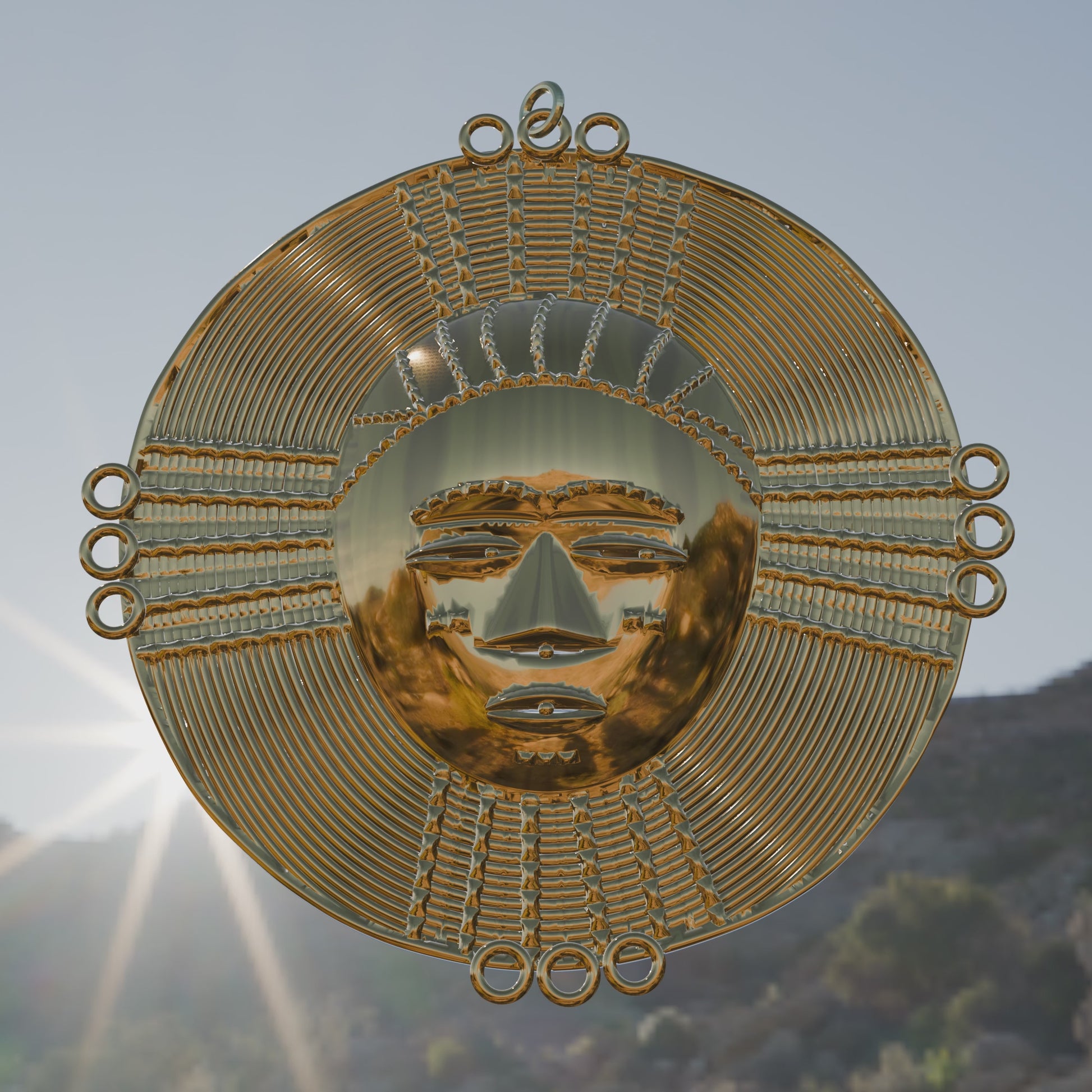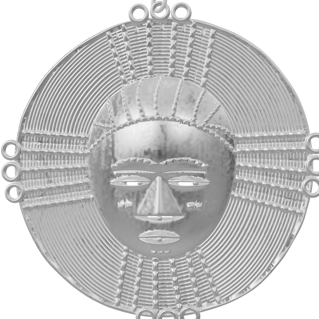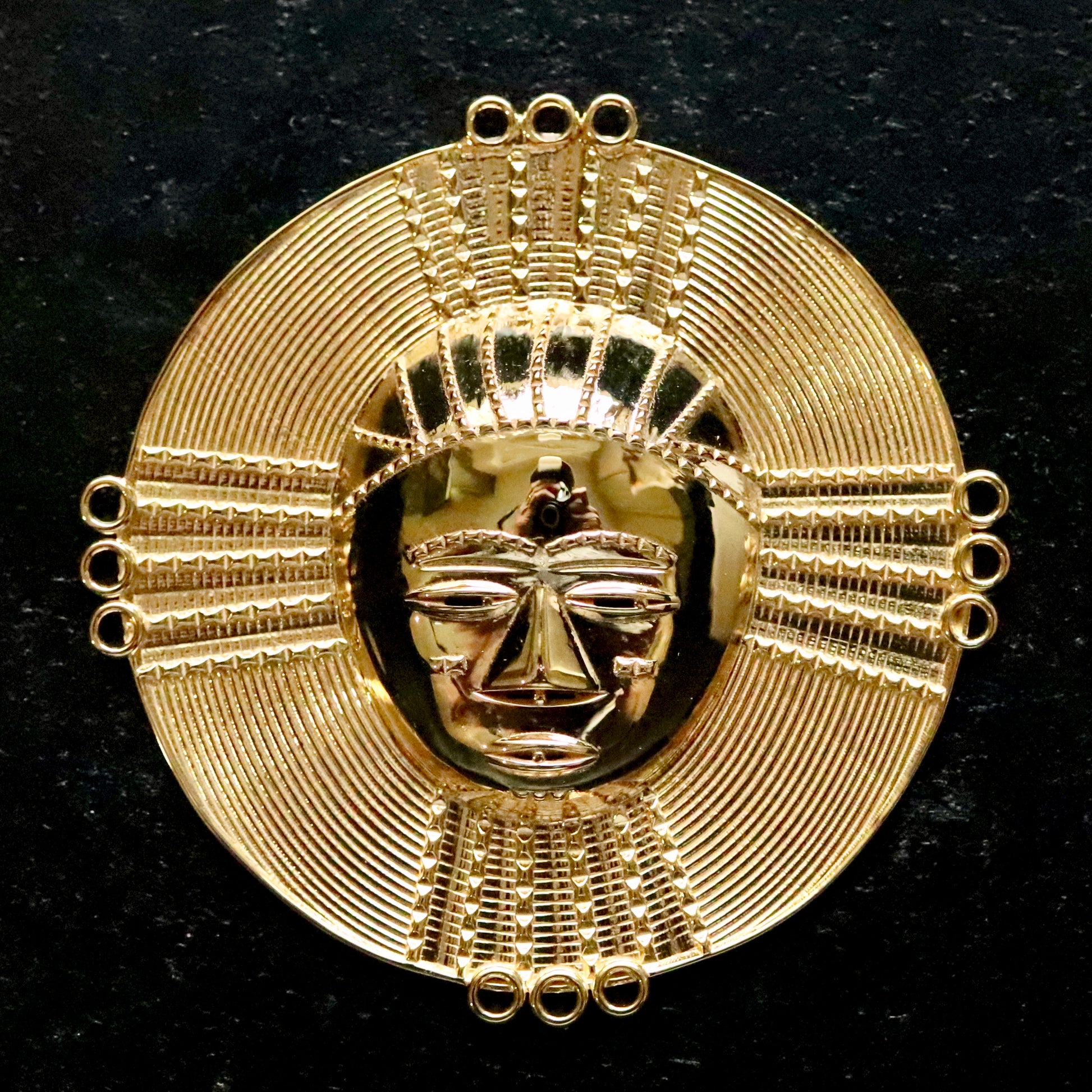 Handmade reproduction of a magnificent Akan gold alloy trailer pendant. The 1800s artifact pendant is in private collection. Original: face surrounded by gold coils with filigree and granulated detail and hammered repoussé back. Replica: 3d printed to fractions of a mm accuracy, and lost wax cast to order.