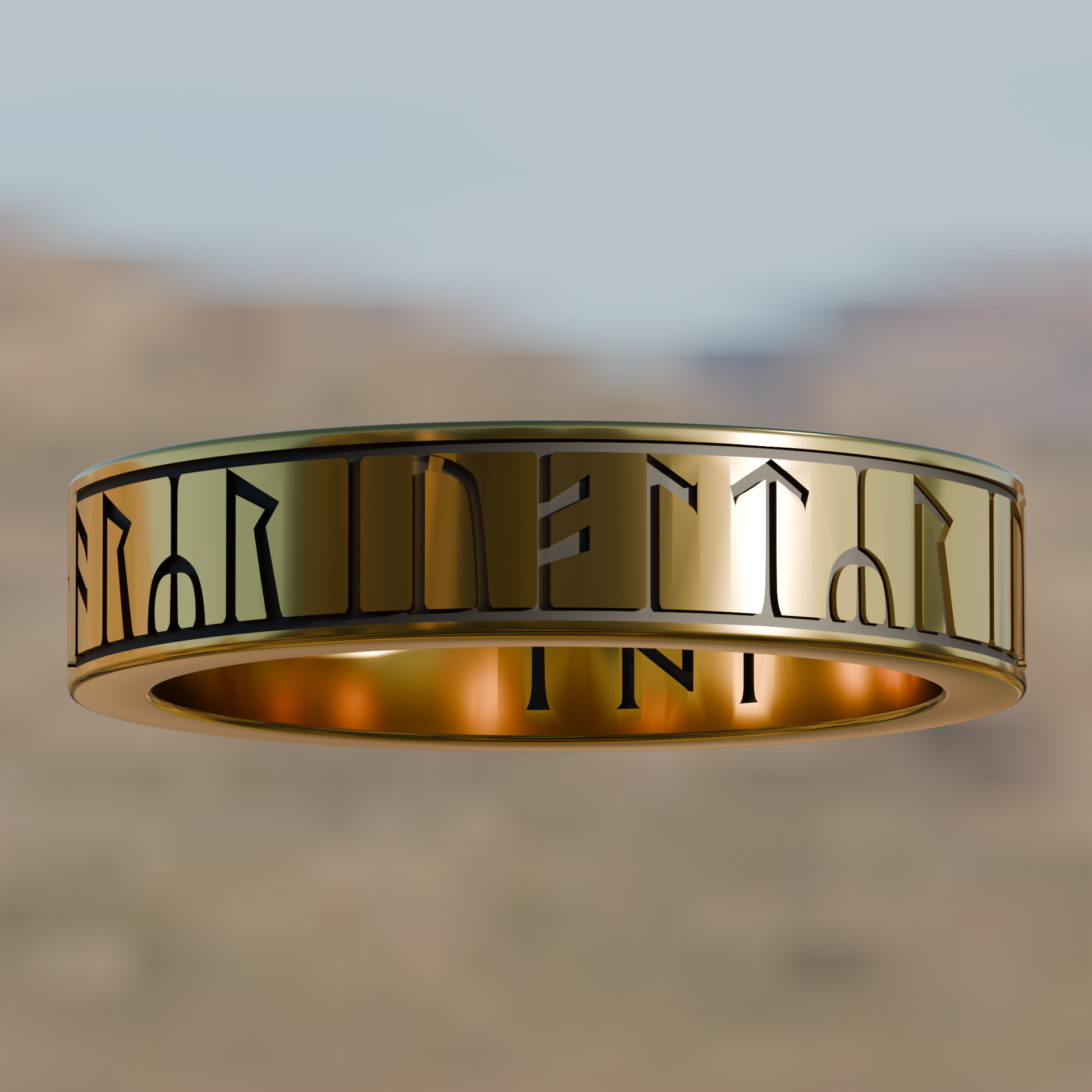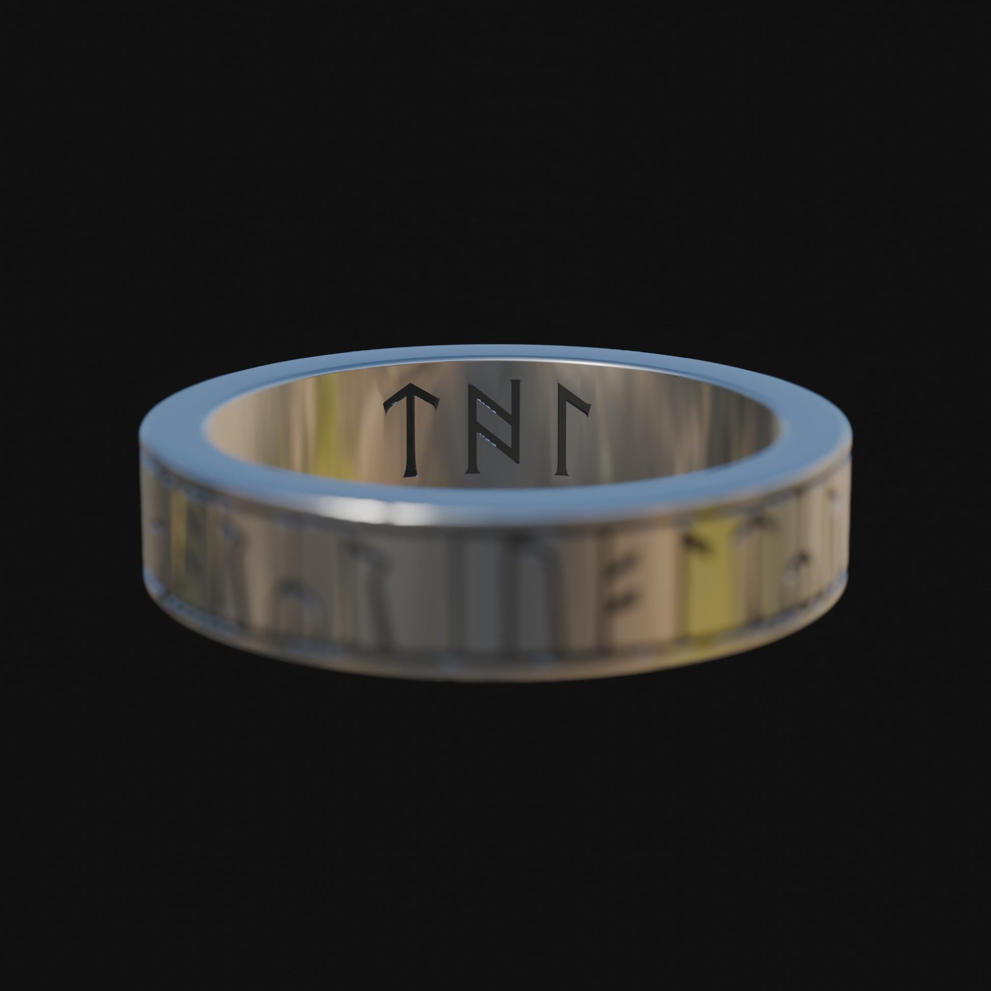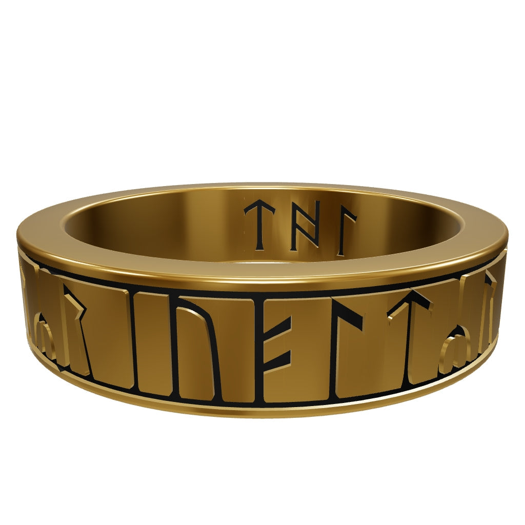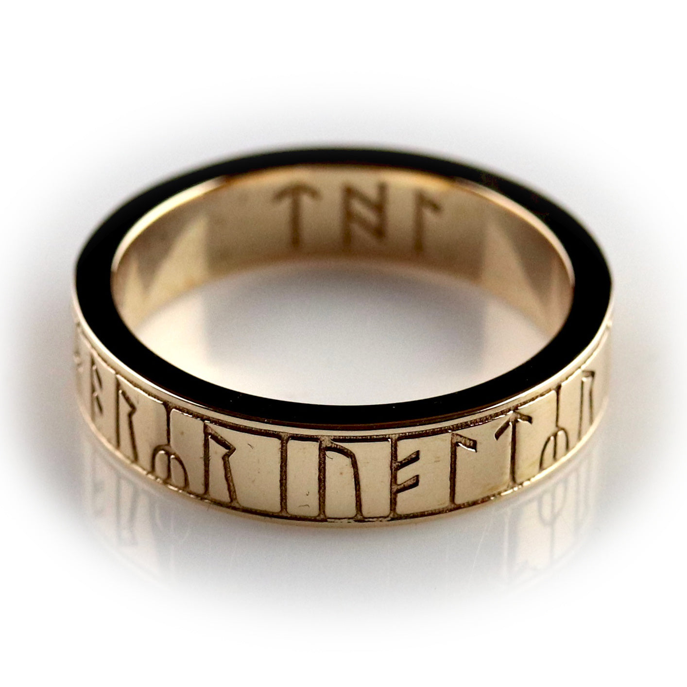 Gold finger-ring, engraved with a runic inscription around the hoop between nielloed lines; three letters continuing on inside of hoop.
