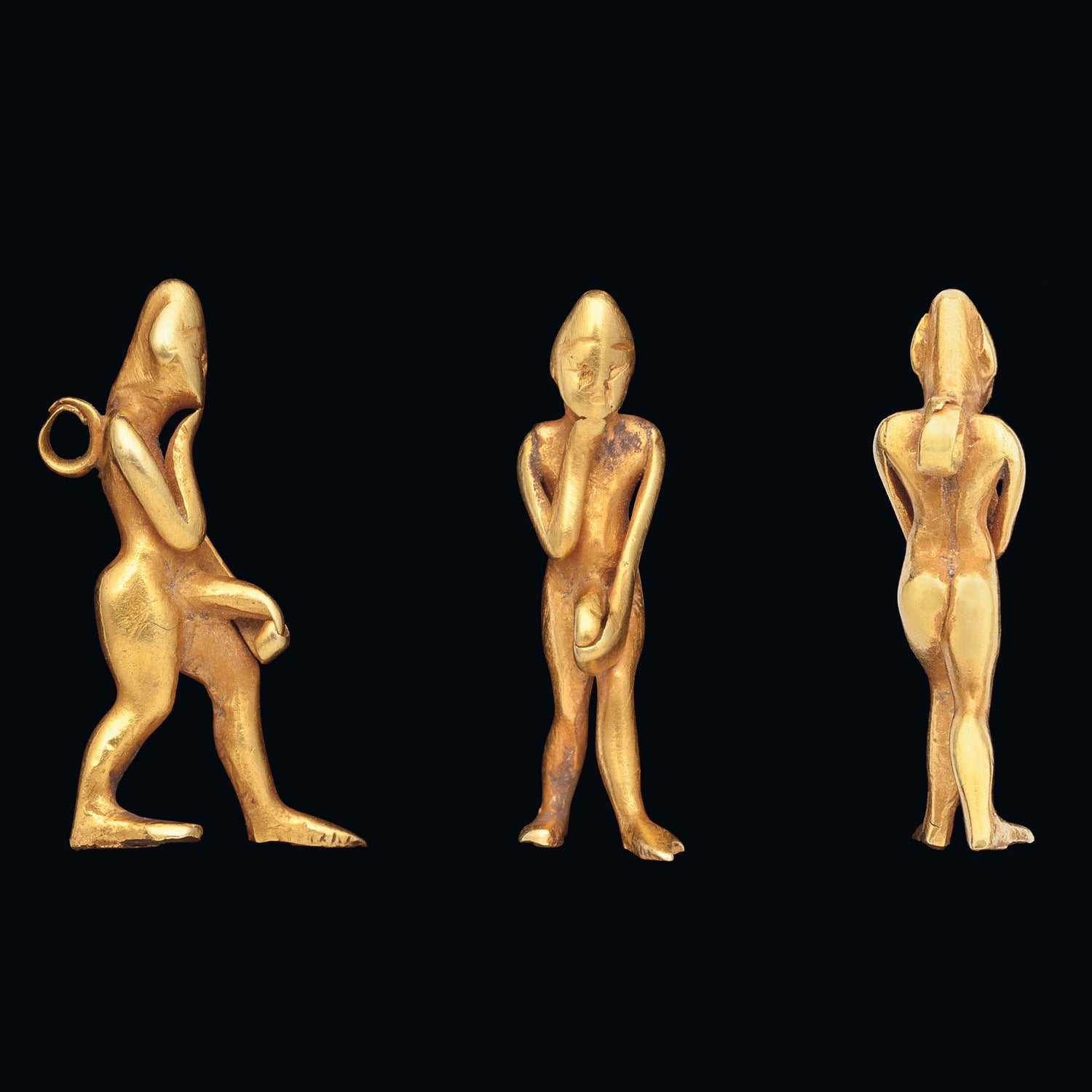 AN EGYPTIAN GOLD AMULET OF AN ITHYPHALLIC GOD