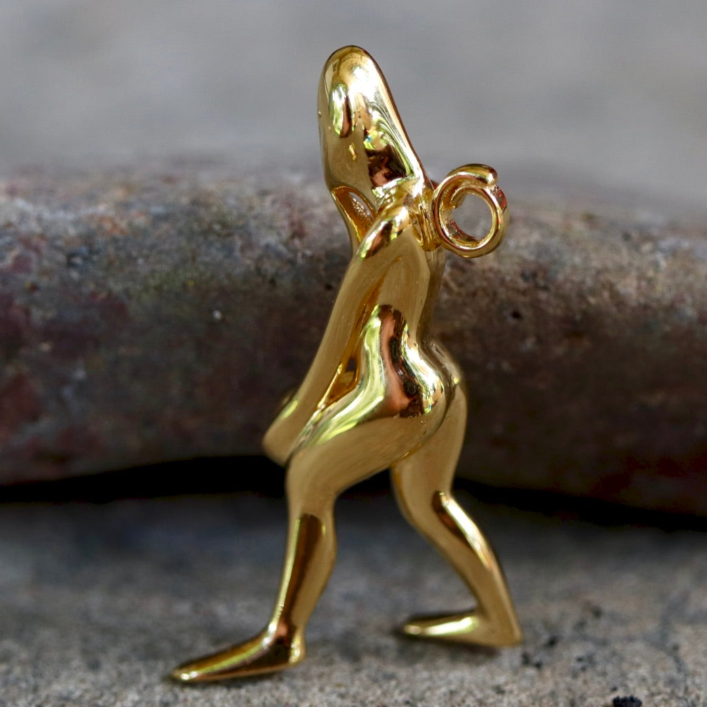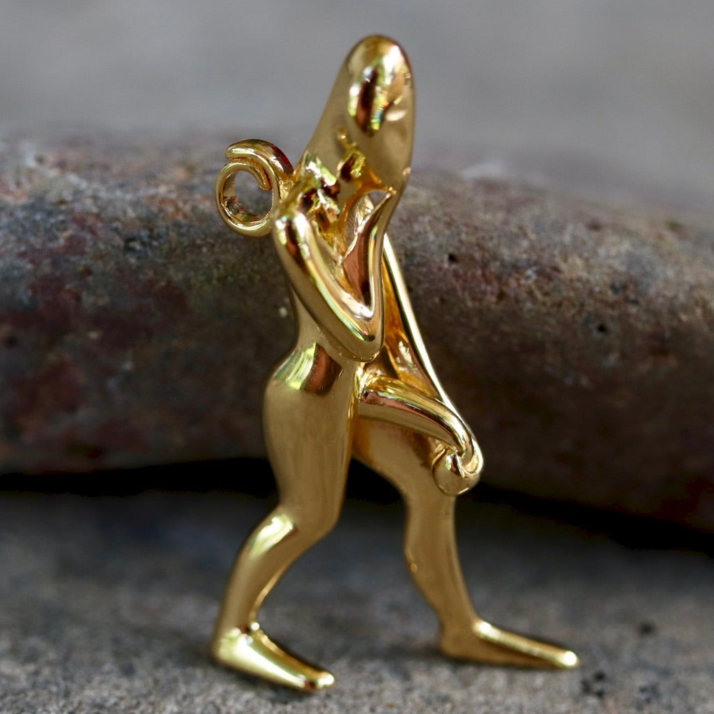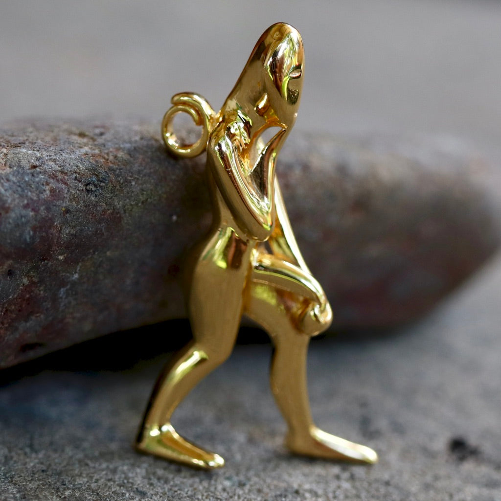 Lost wax cast reproduction of Ancient Egyptian pendant or charm showing an Ithyphallic deity.
