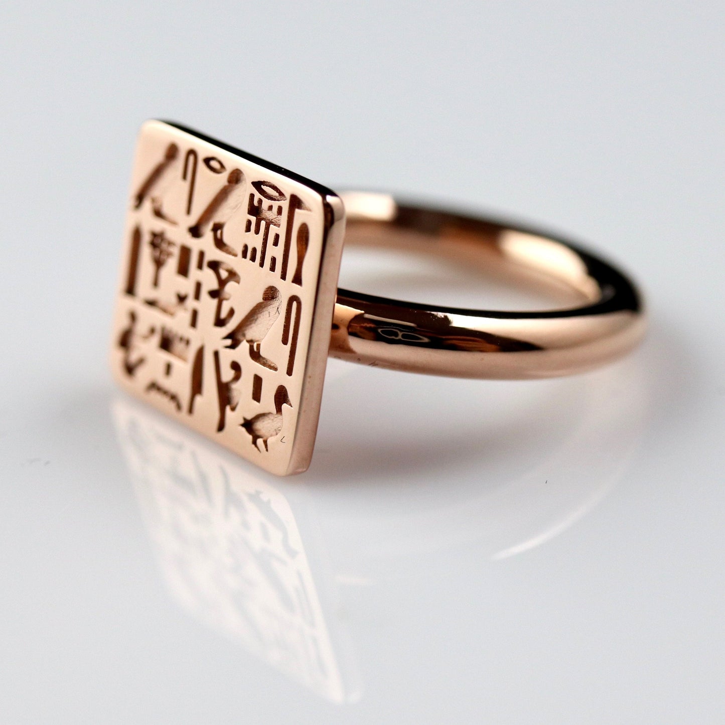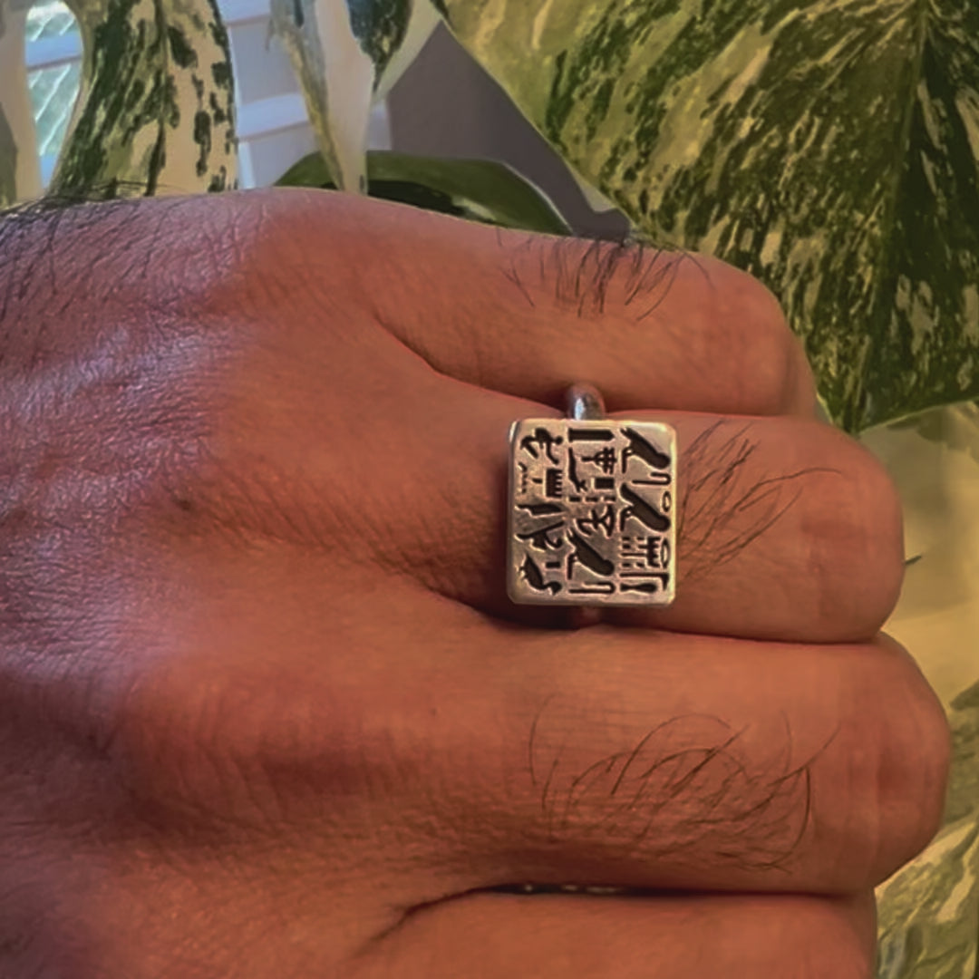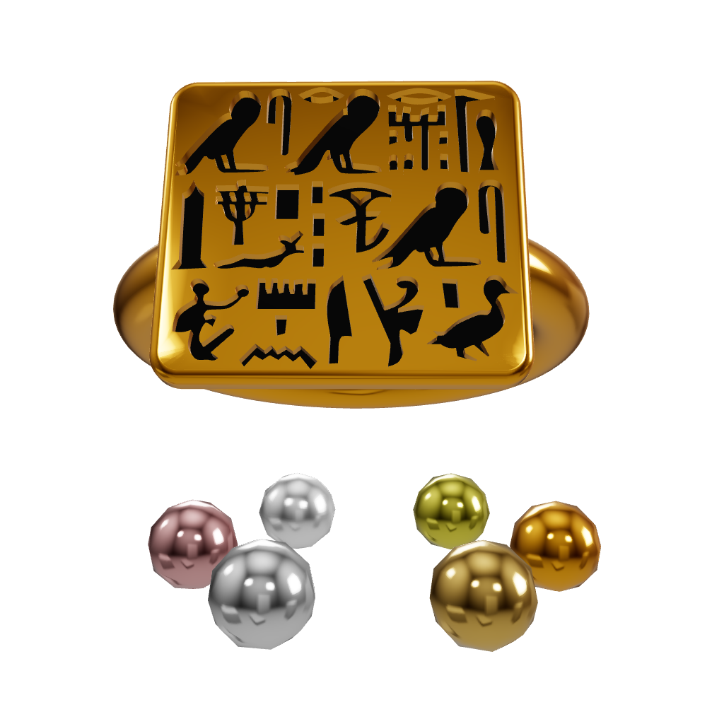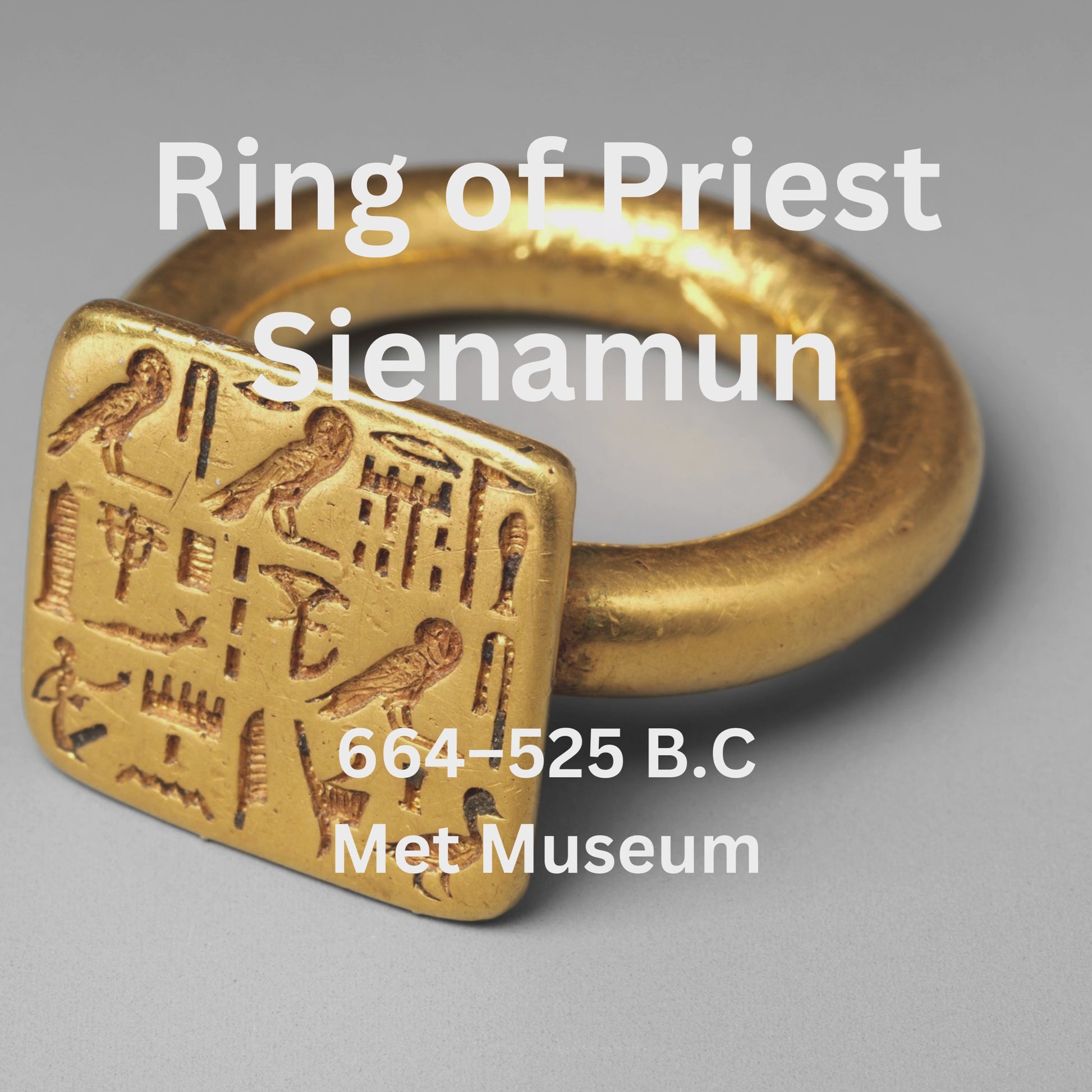 Lost wax cast reproduction of The Ring of Priest Sienamun an Ancient Egyptian artifact created between 664–525 BC and housed at the Met Museum. The Priestess version of this product features women's sizes, and the Priest version features men's sizes.