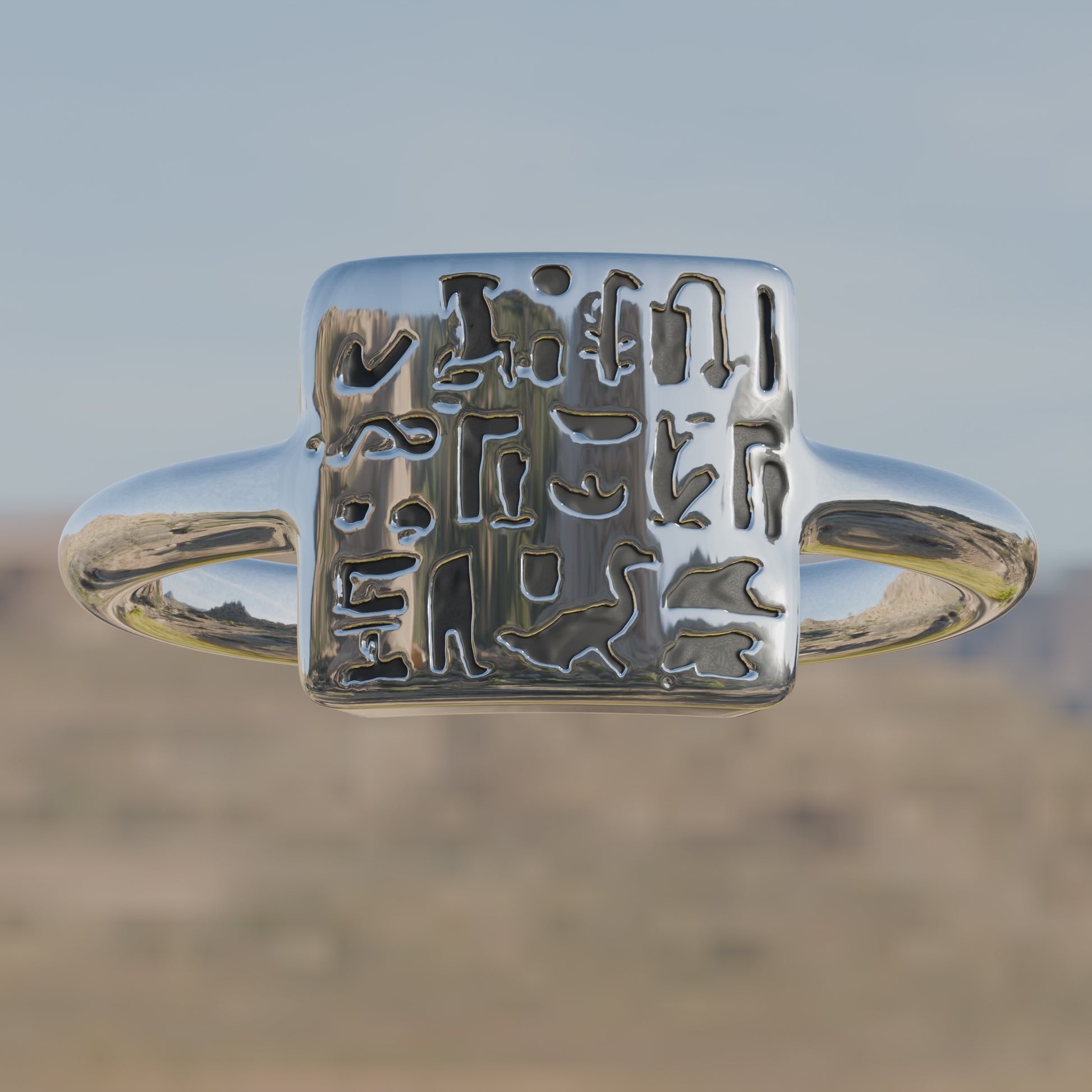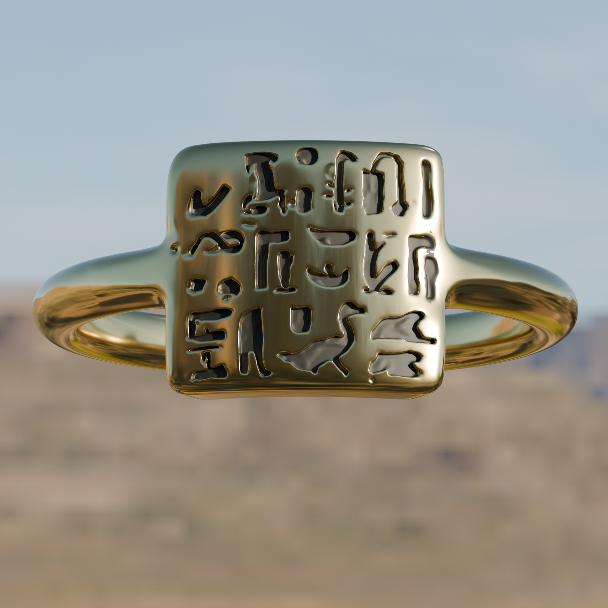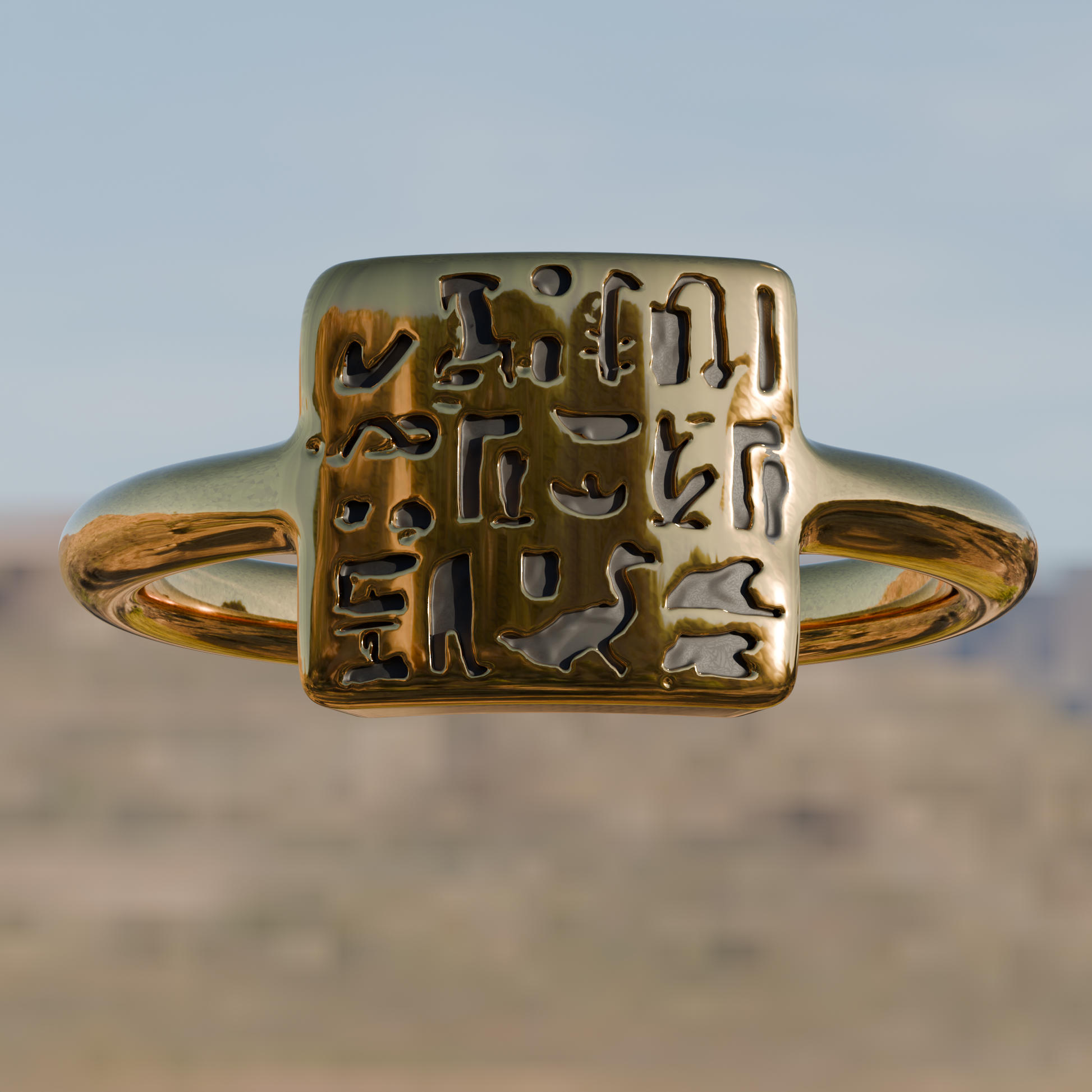 Lost wax cast reproduction of a late period signet ring Ancient Egyptian artifact created between 664–332 BC and housed at the Louvre.