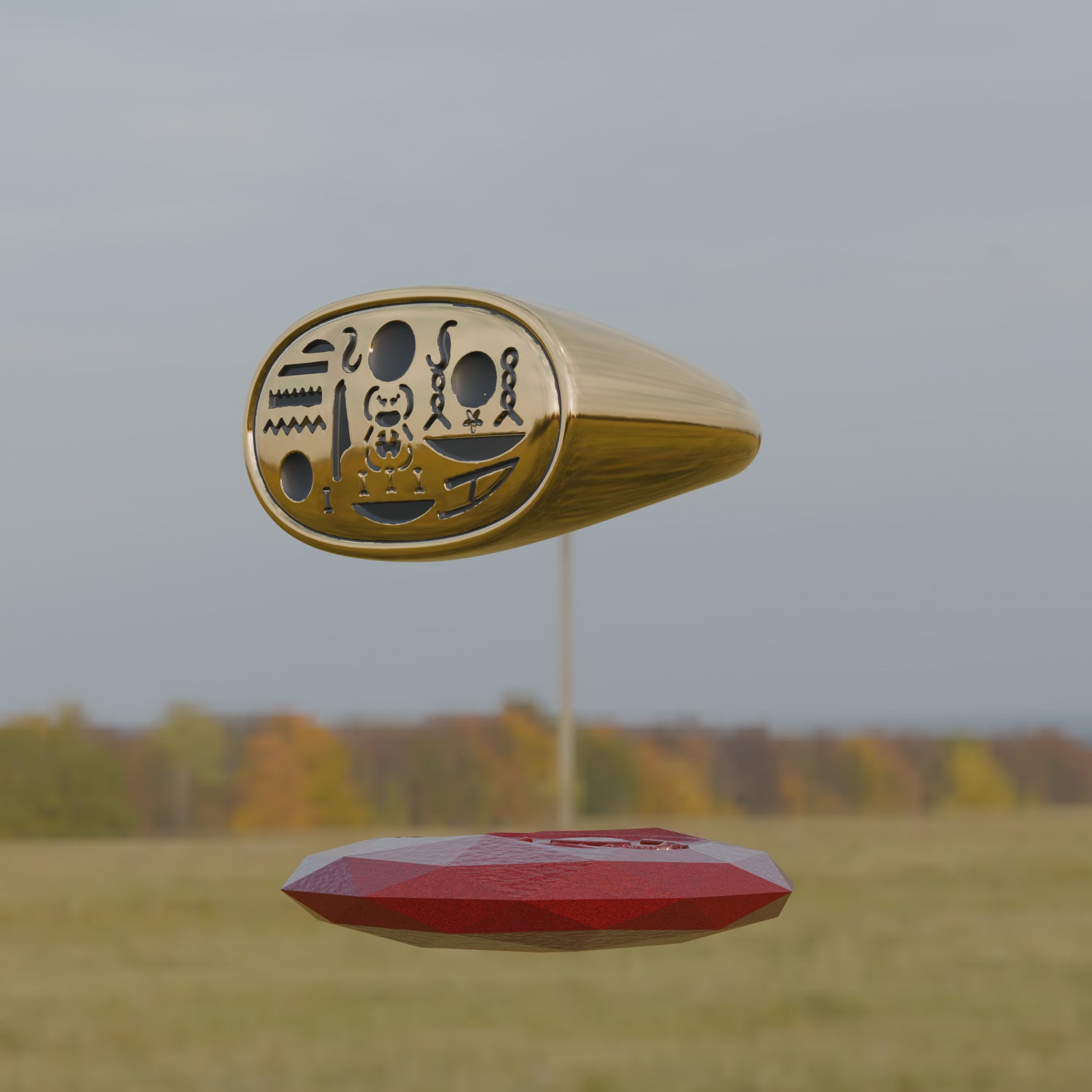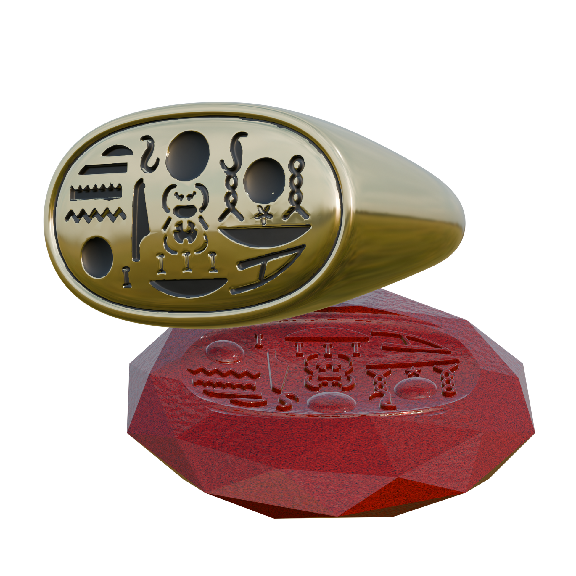 Exact reproduction of the cartouche signet ring once worn by Tutankhamun featuring the young Pharaoh's throne name Nebkheperure