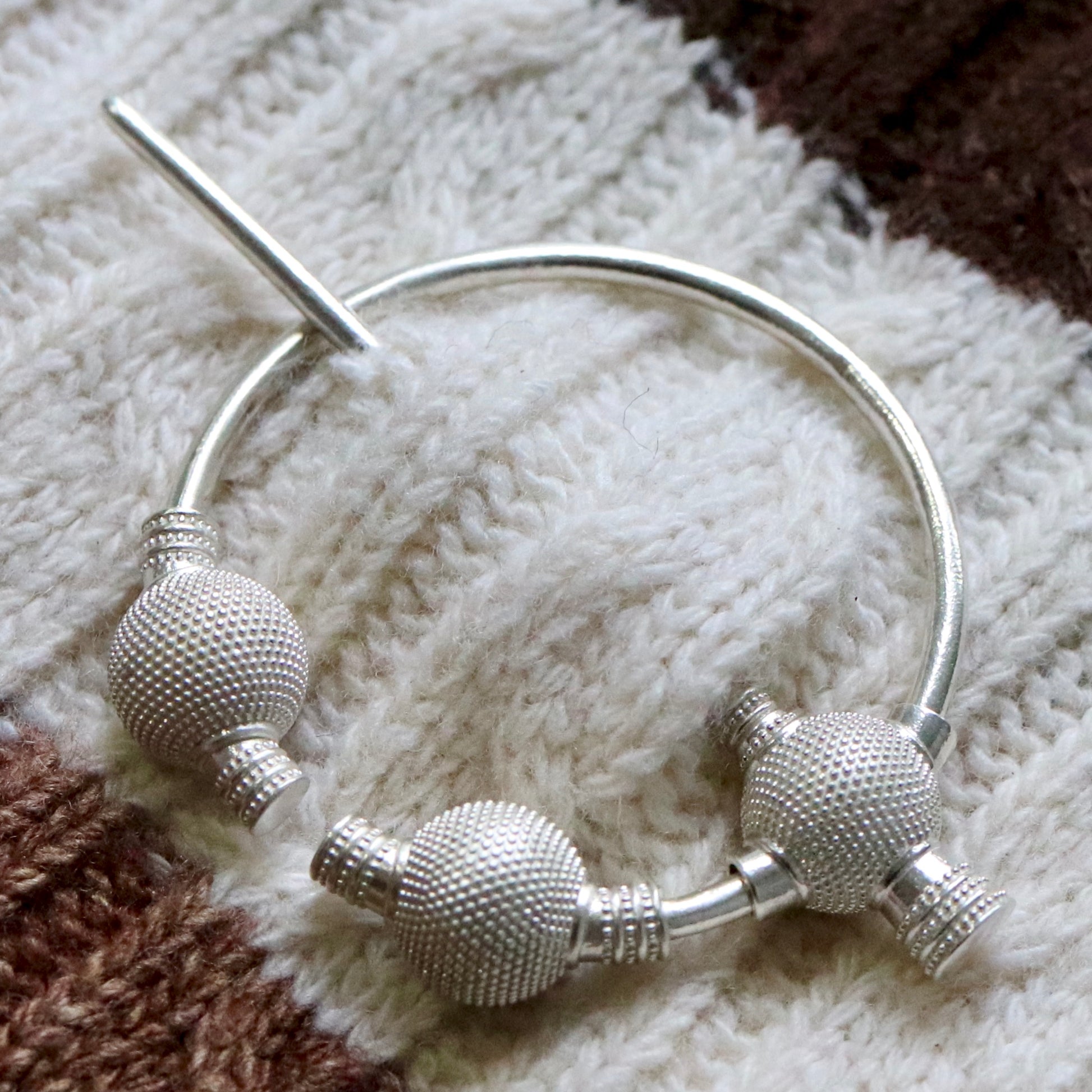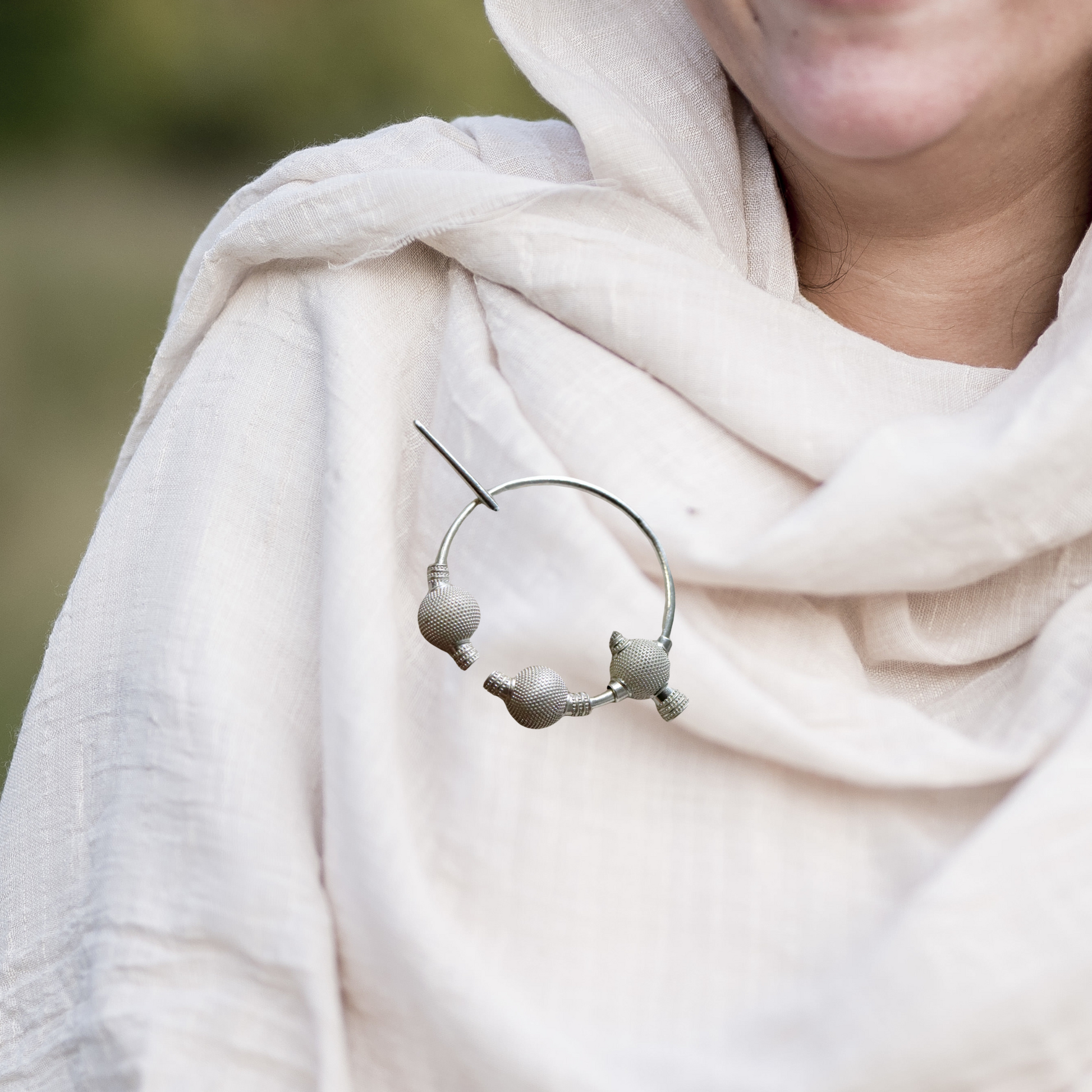 Reproduction of a 9th century viking open ring brooch. Originally silver, part of the Karlby Hoard.