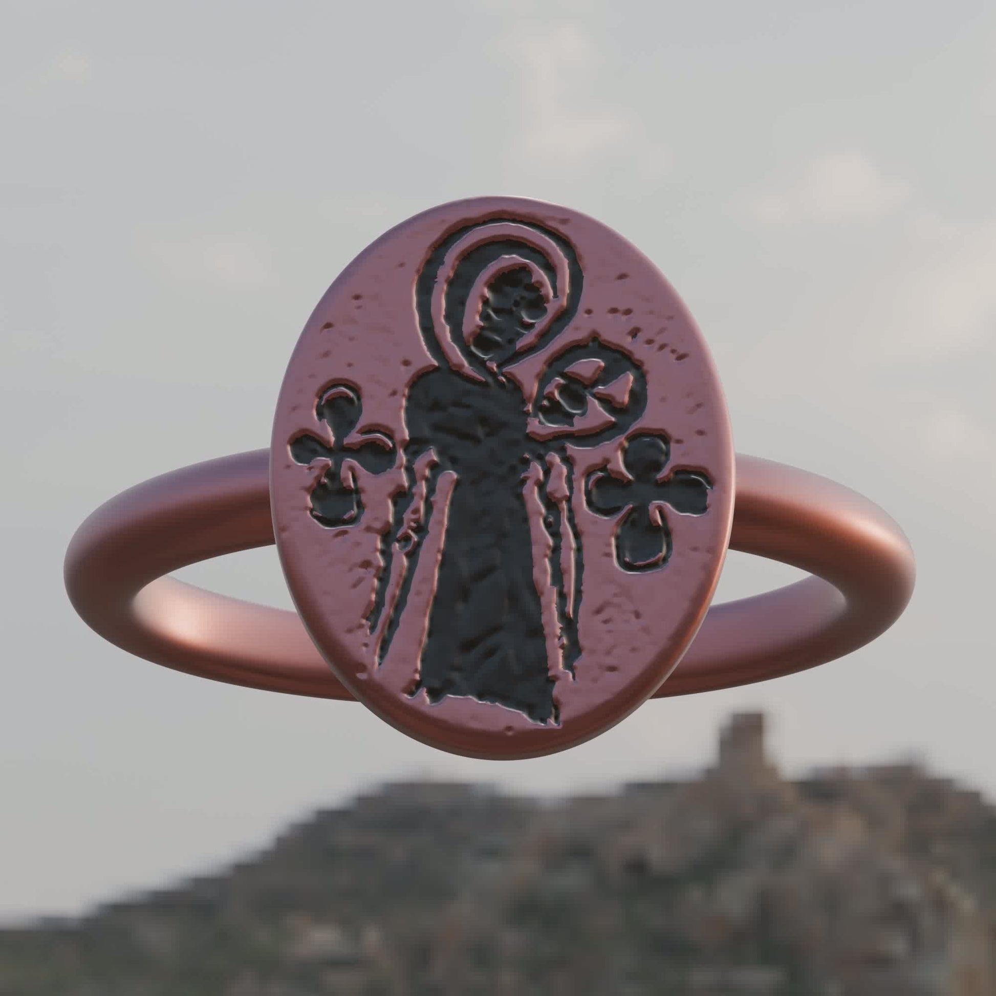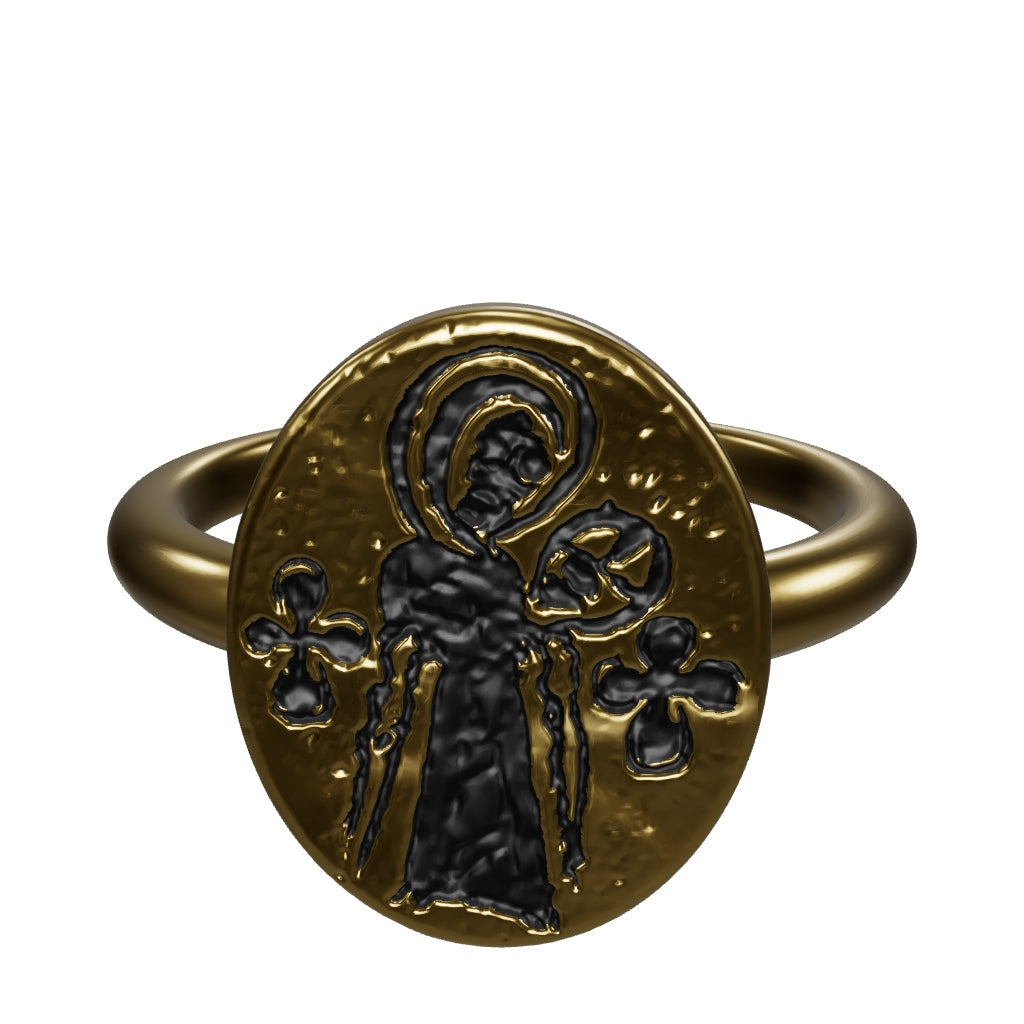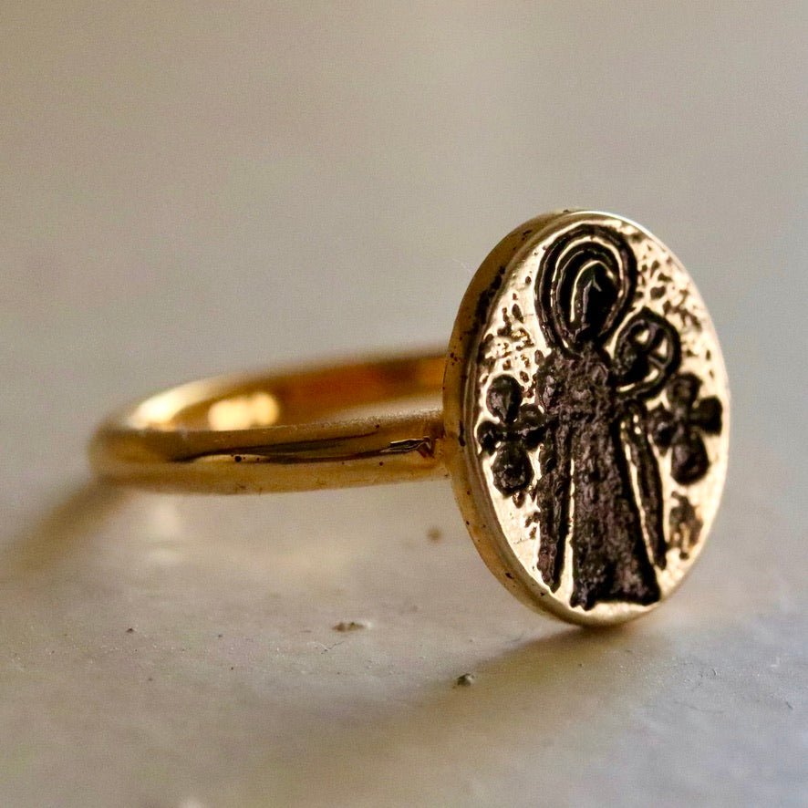 Byzantine ring featuring enameled relief of Virgin Mary and baby Jesus.